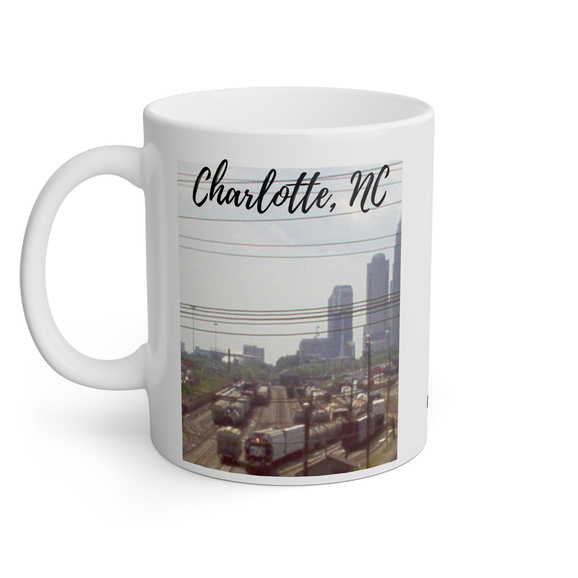 Charlotte NC Skyline & Trains Mug, 11oz, Coffee Mug, Special Occassion Mug, Souvenir