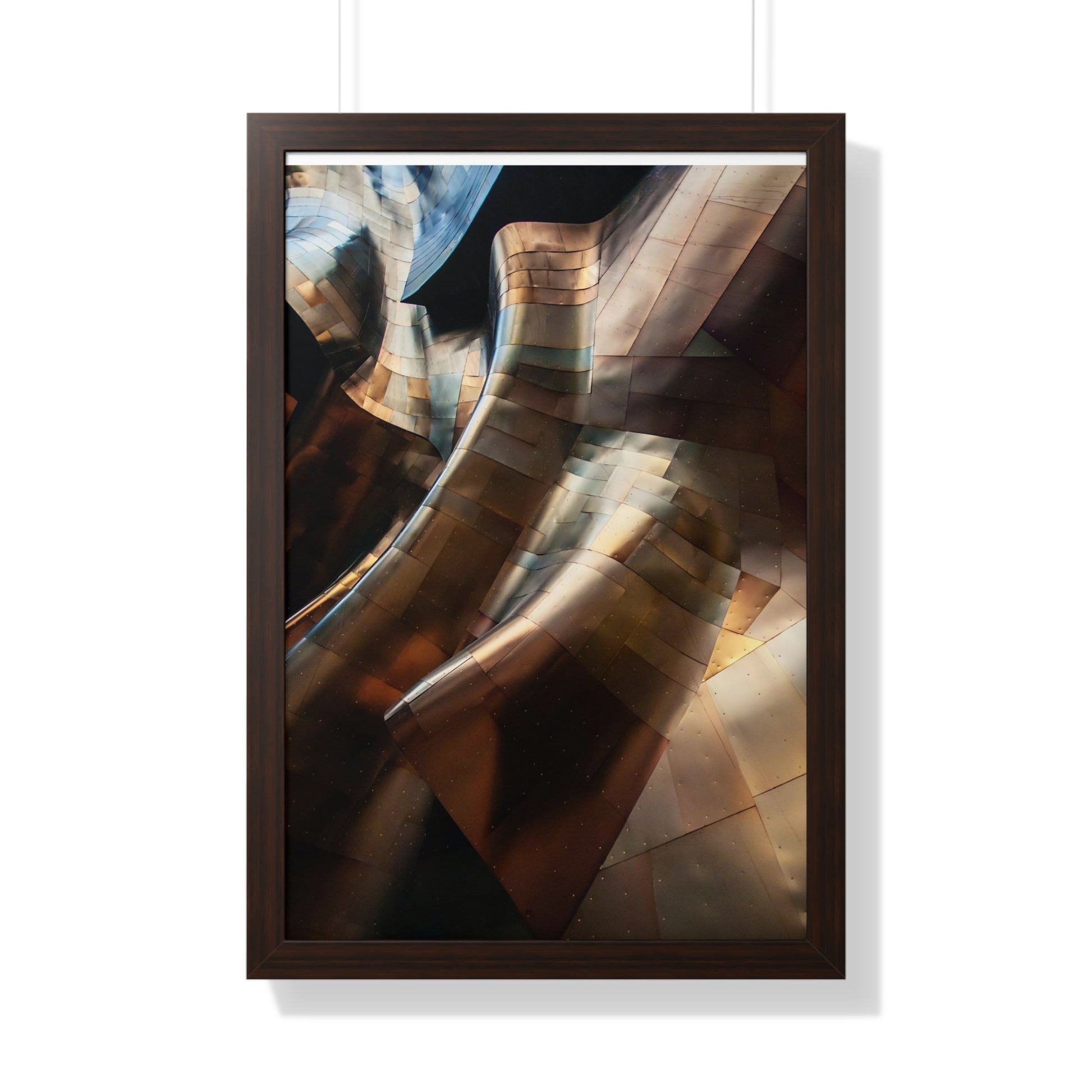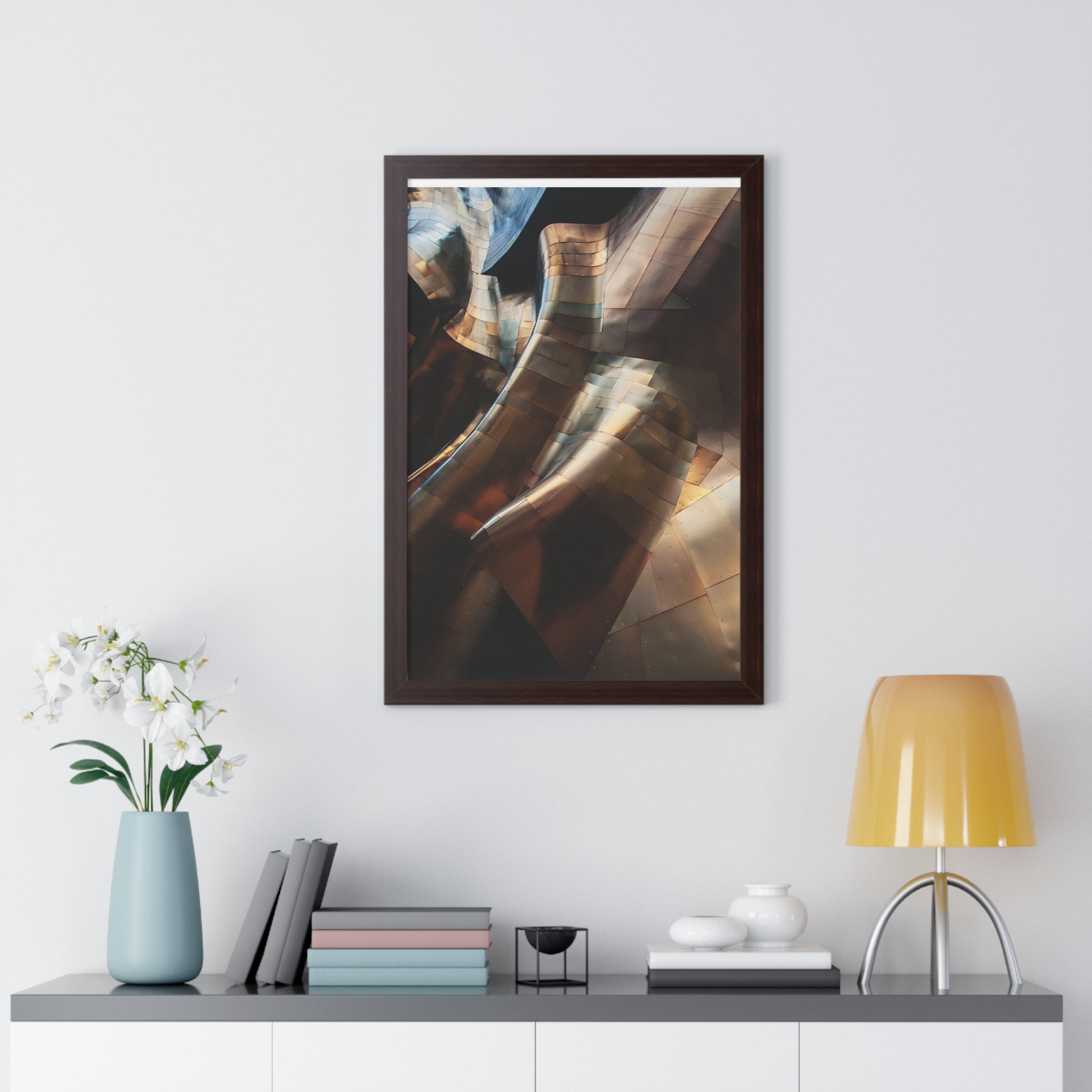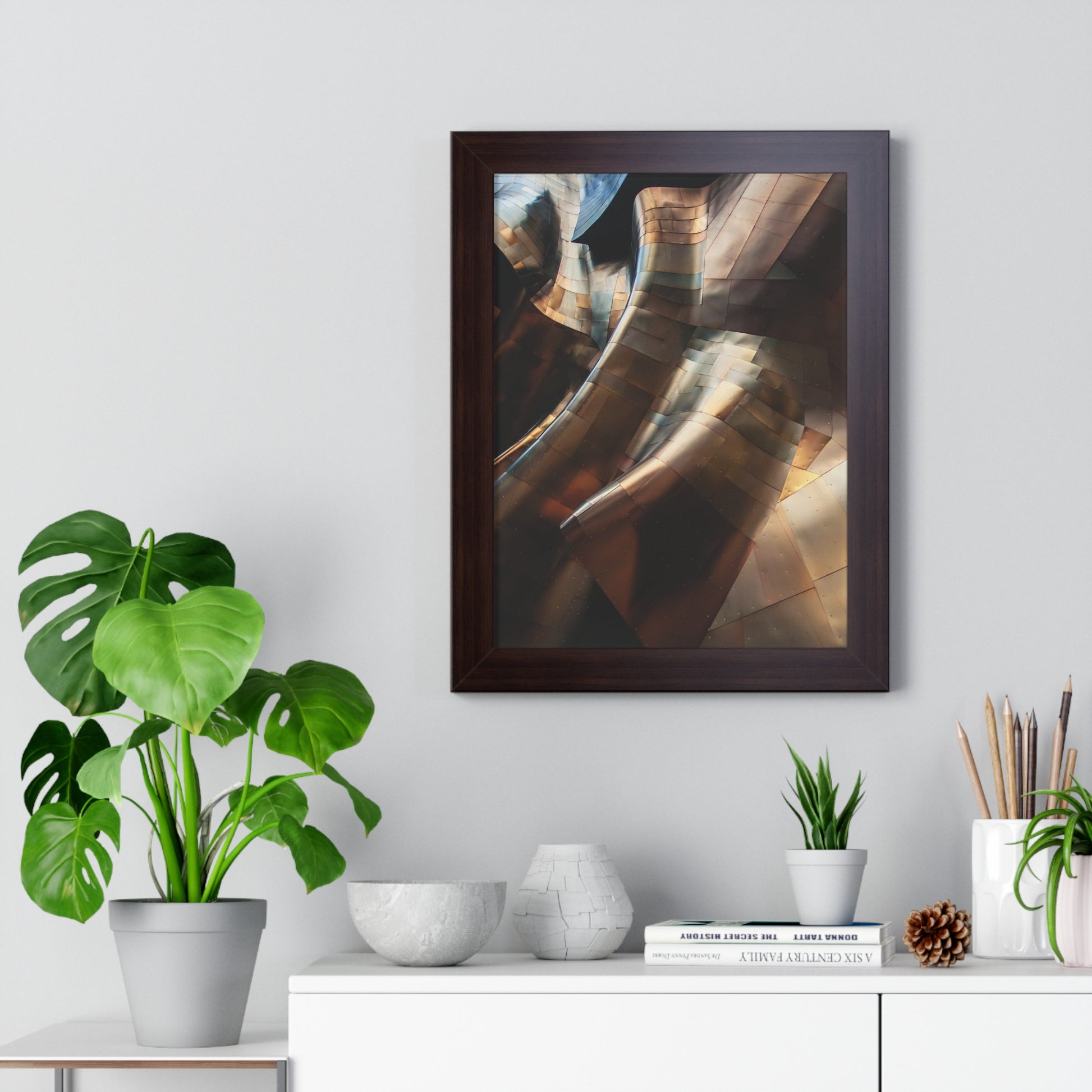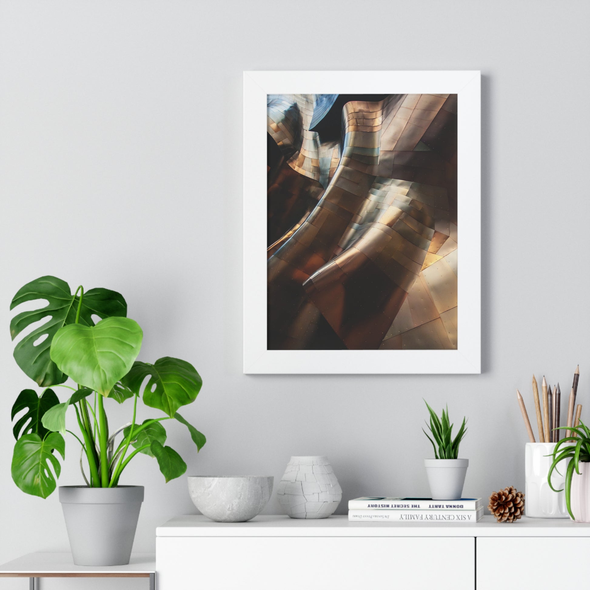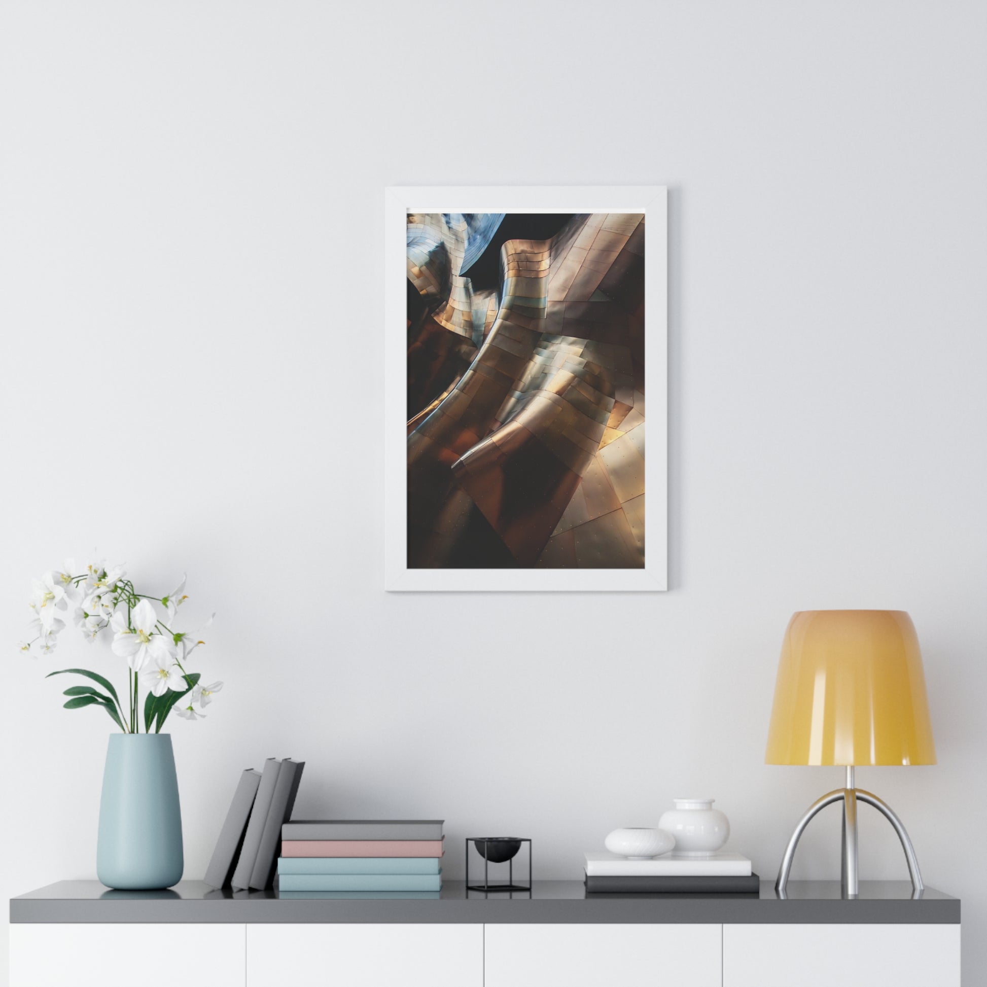 Modern Brown & Gold Multi Colored Abstract Art Framed Vertical Poster