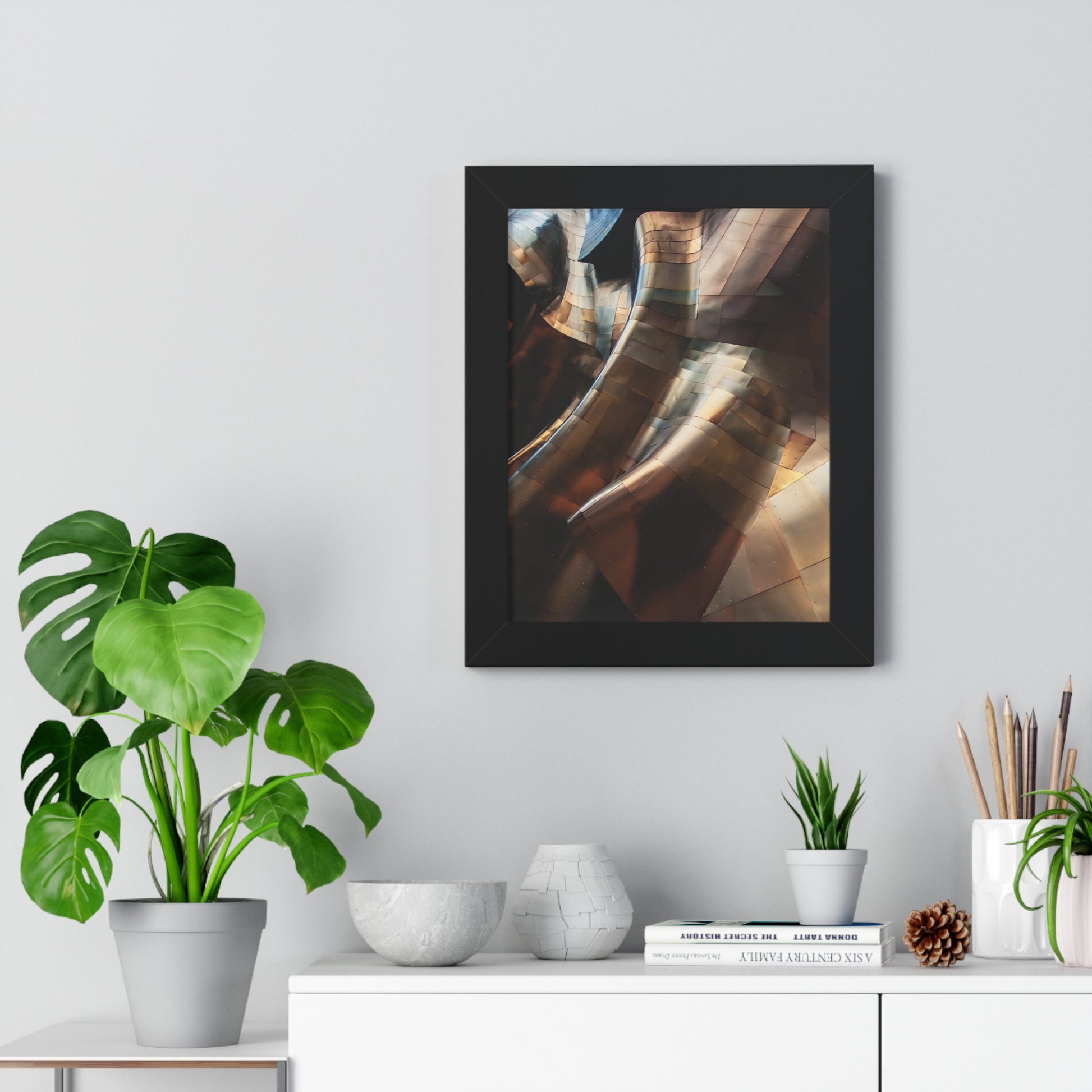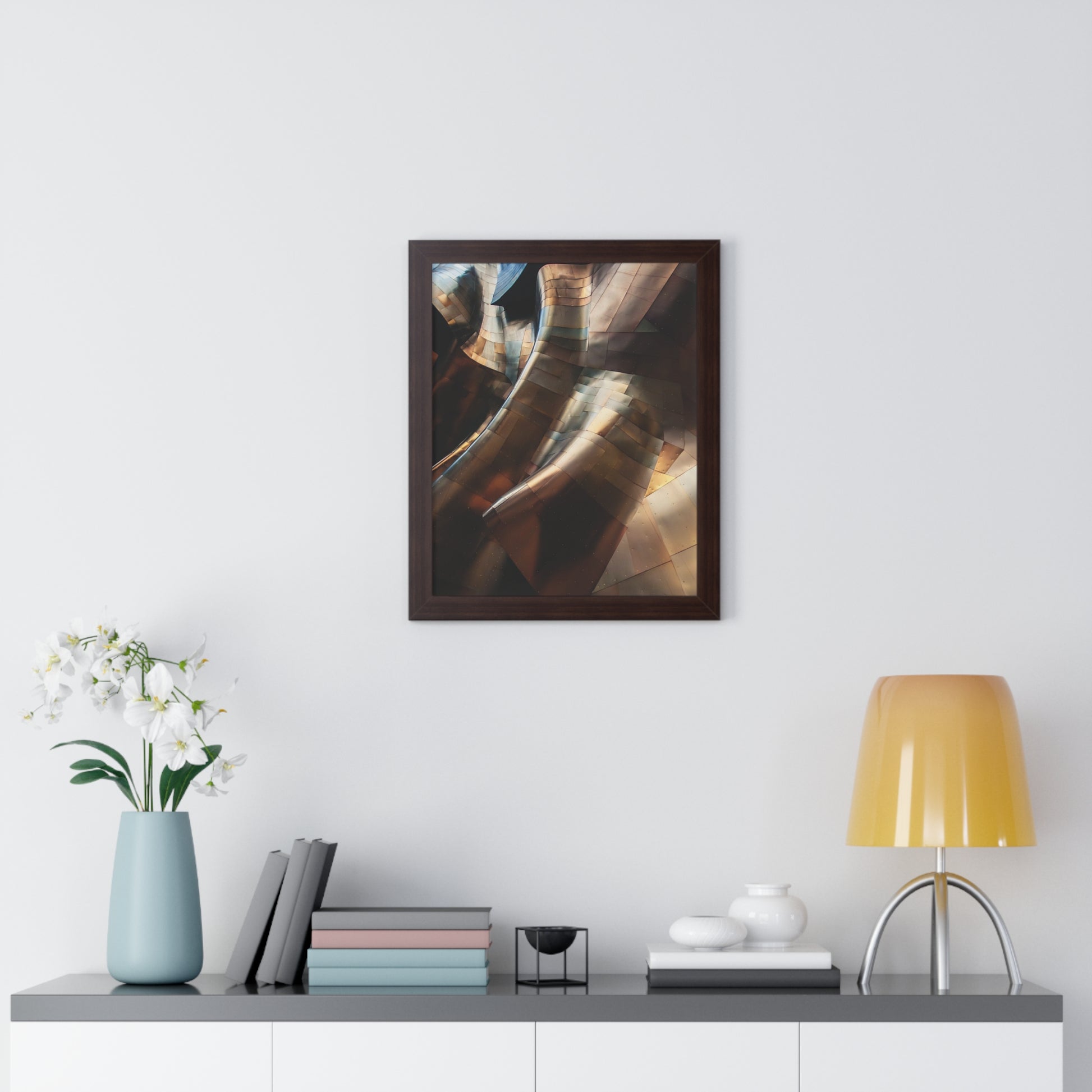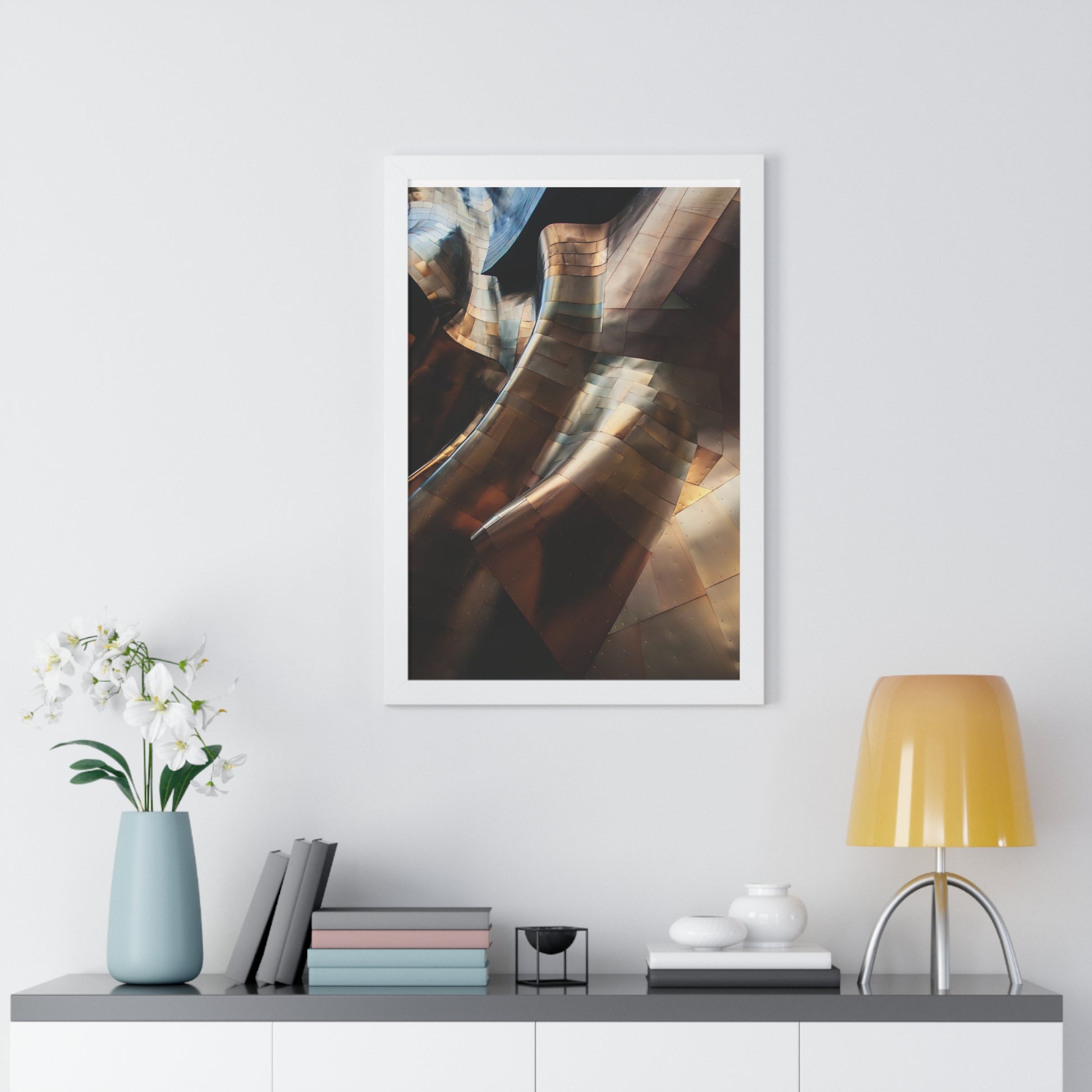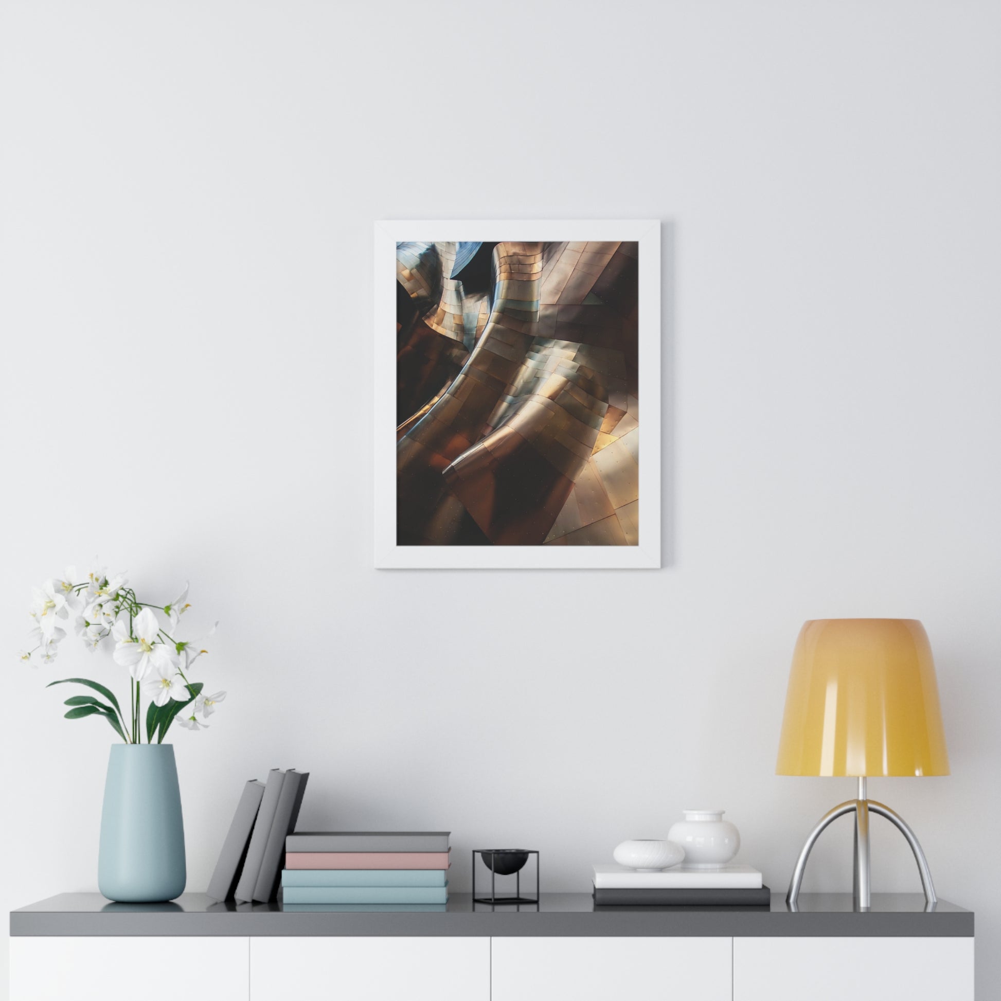Modern Brown & Gold Multi Colored Abstract Art Framed Vertical Poster