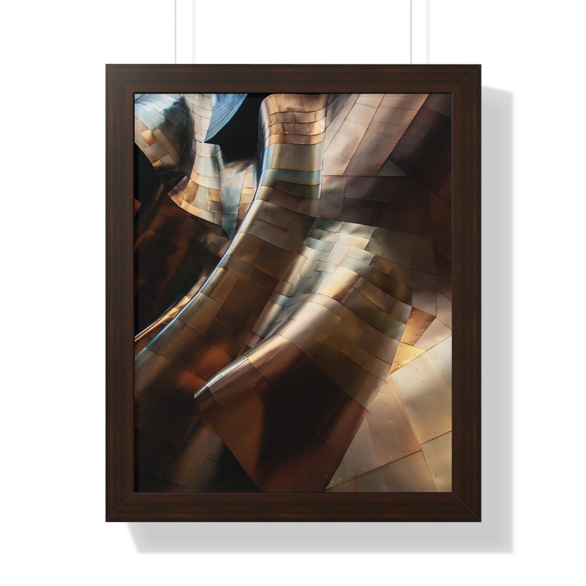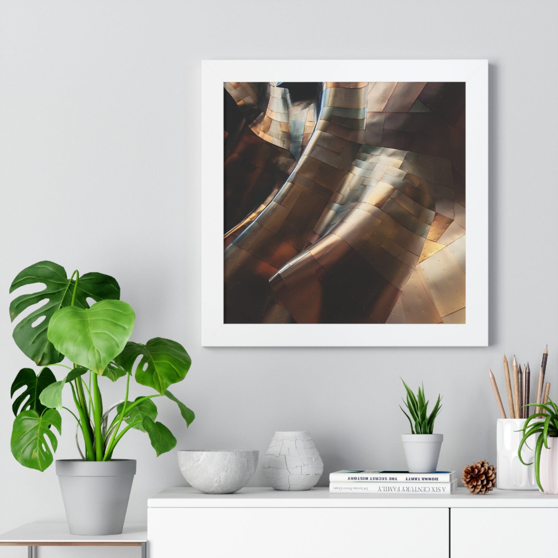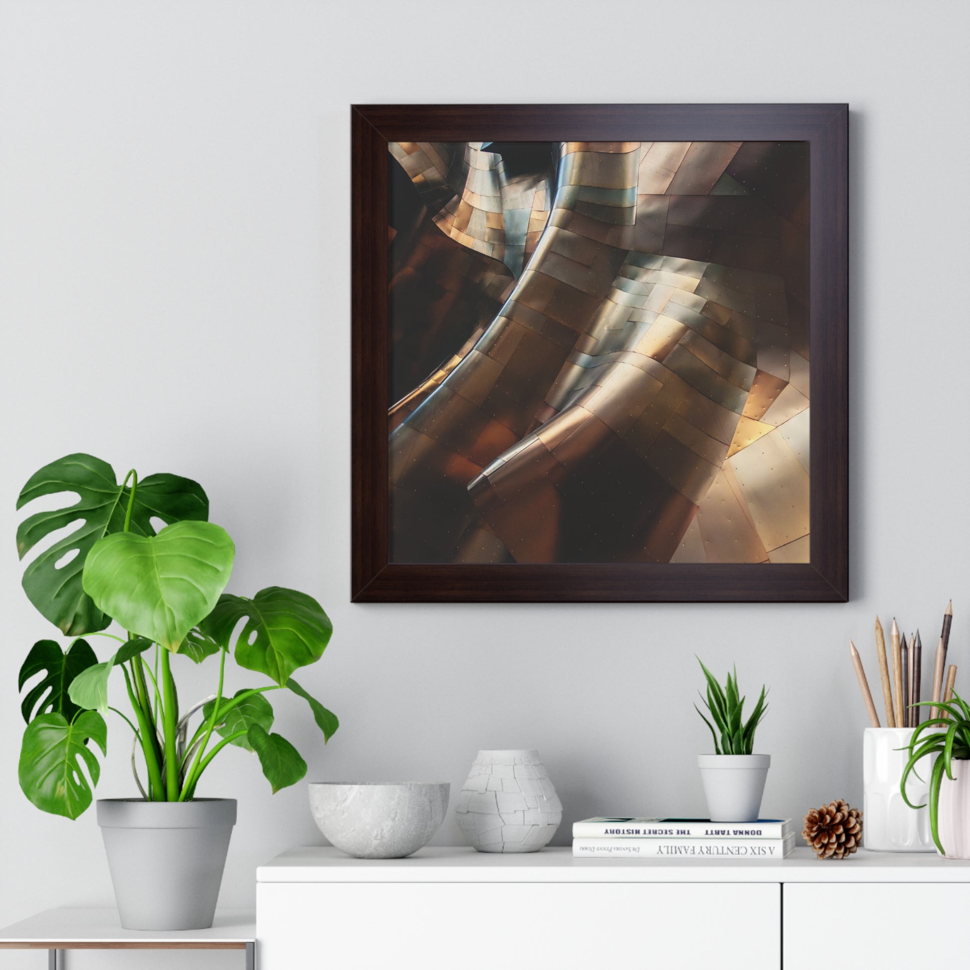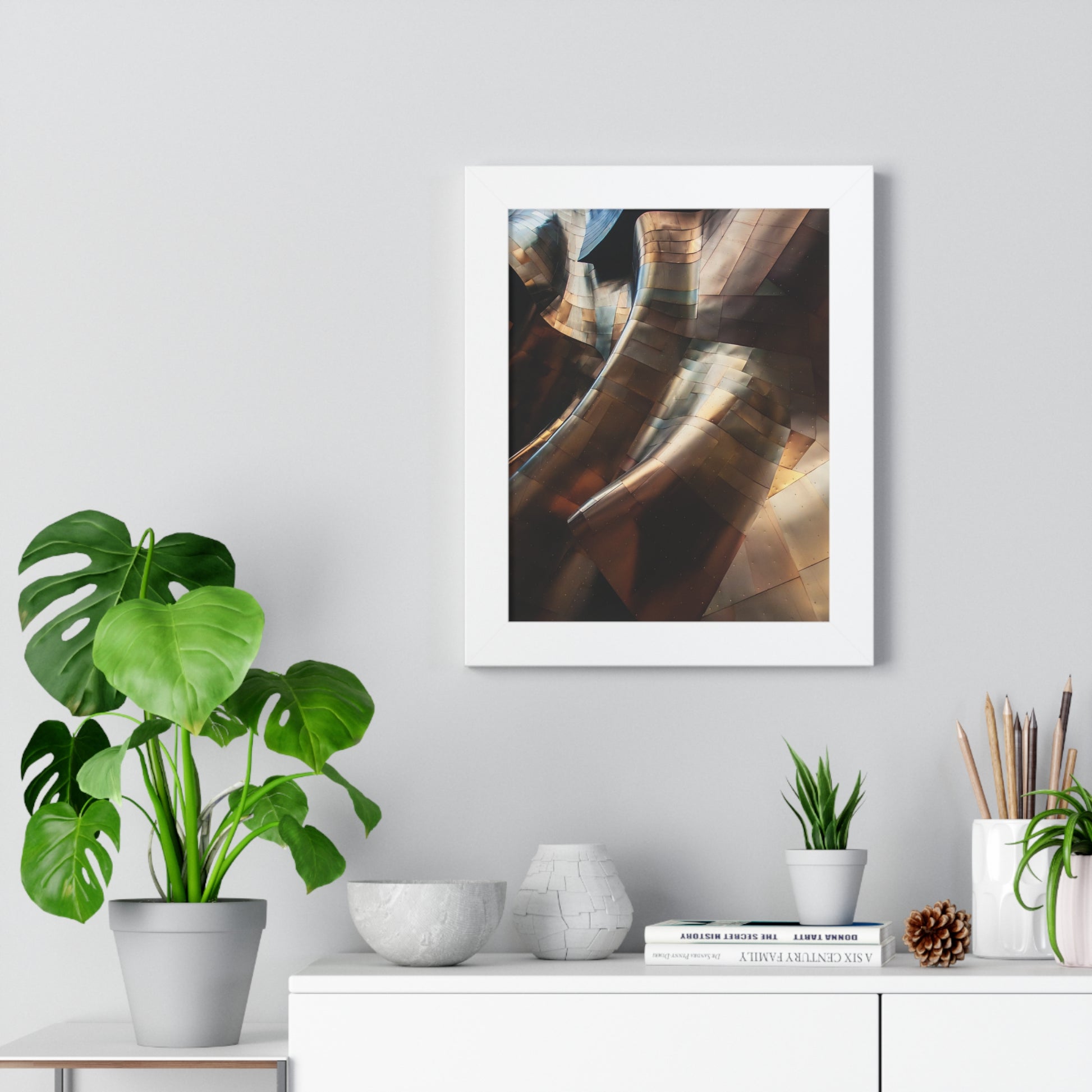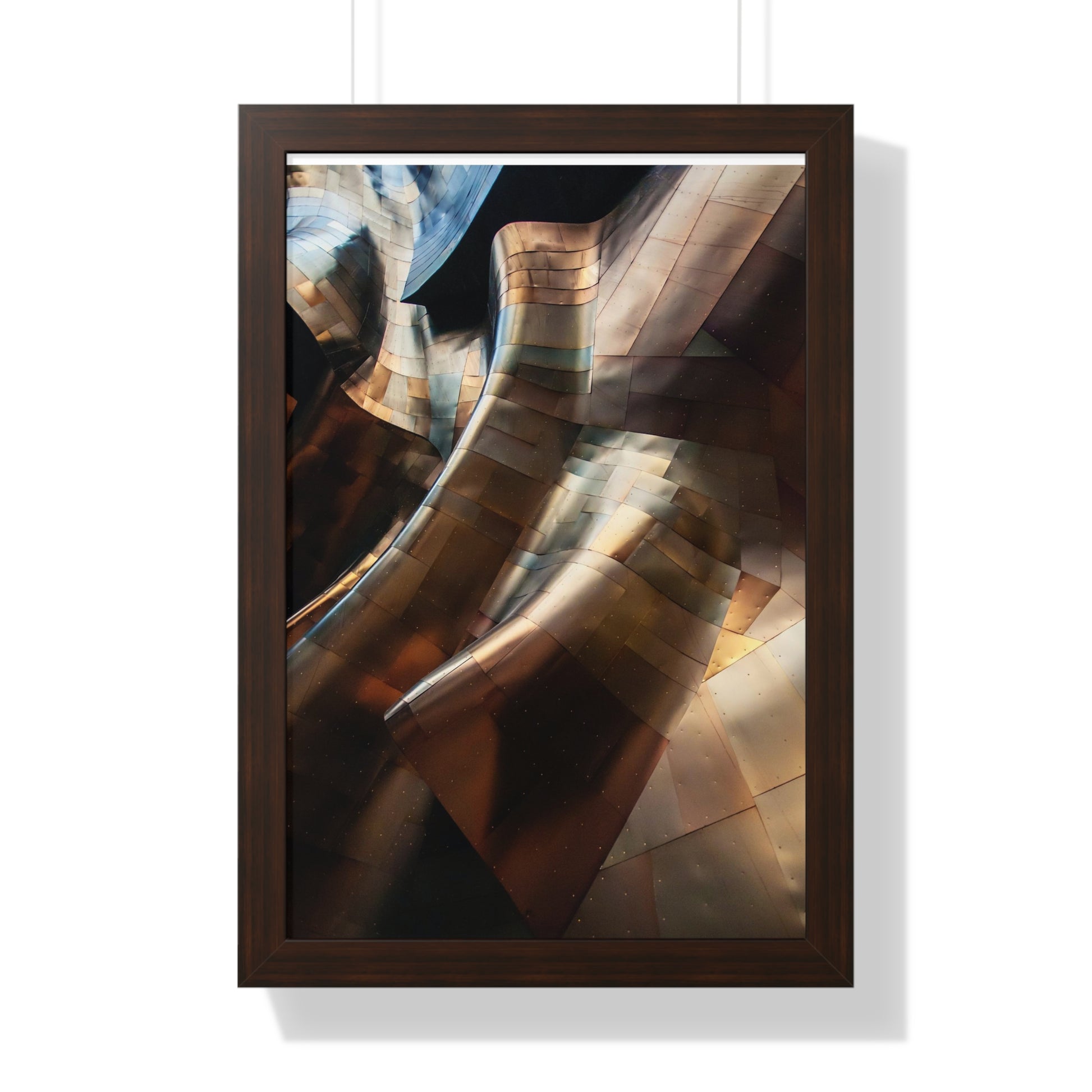 Modern Brown & Gold Multi Colored Abstract Art Framed Vertical Poster